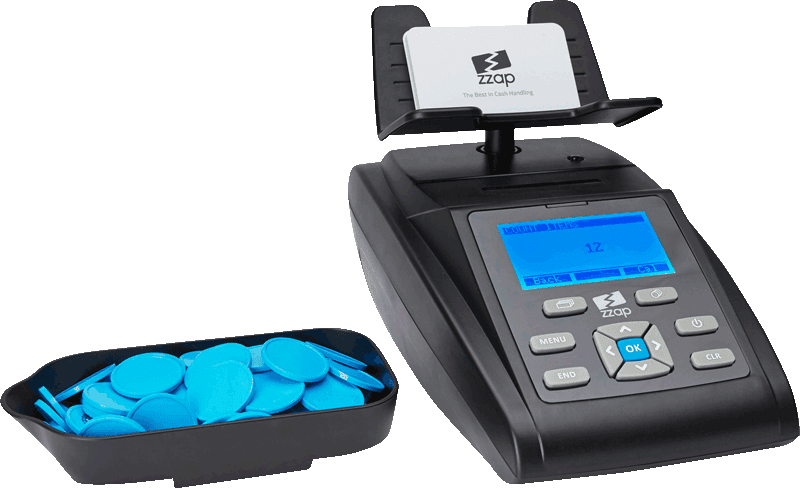 - Zählt Wertmünzen, Casino-Chips, Gutscheine und Tickets